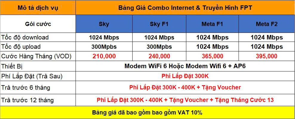 Có chương trình nâng cấp lên Combo Internet + Truyền hình, ưu đãi tùy thời điểm.