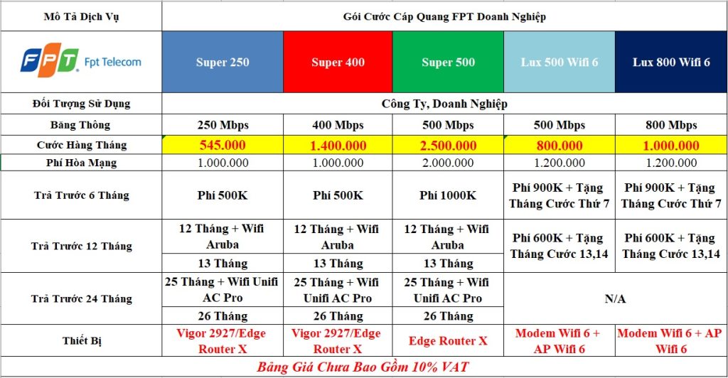 3. Khuyến mãi Lắp Đặt Mạng Internet FPT Vũng Tàu dành cho Doanh nghiệp